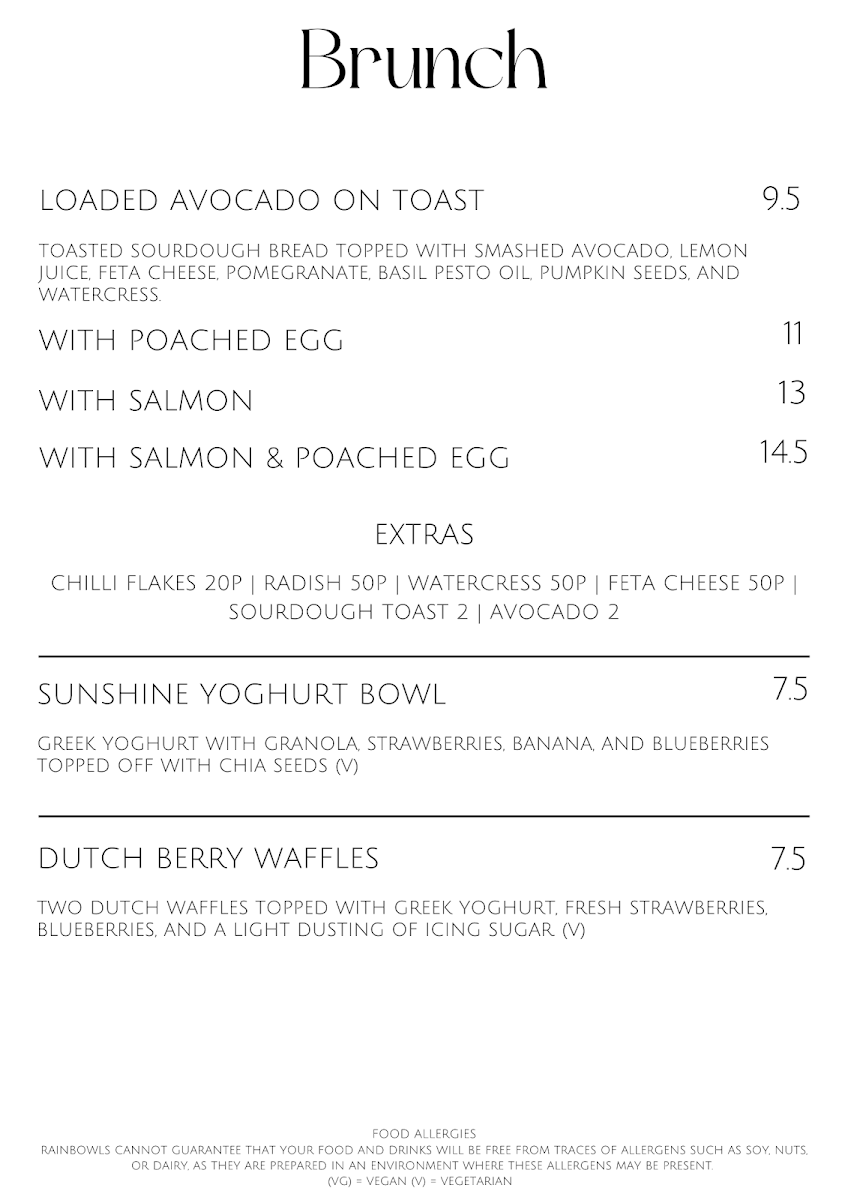 But that's not all! Their brunch menu boasts enticing choices like their Loaded Avocado Toast, a delectable combination of smashed avocado, feta, and vibrant garnishes including pomegranate and spicy chili flakes. Available with poached egg or salmon, this crowd-pleaser starts at £9.50.